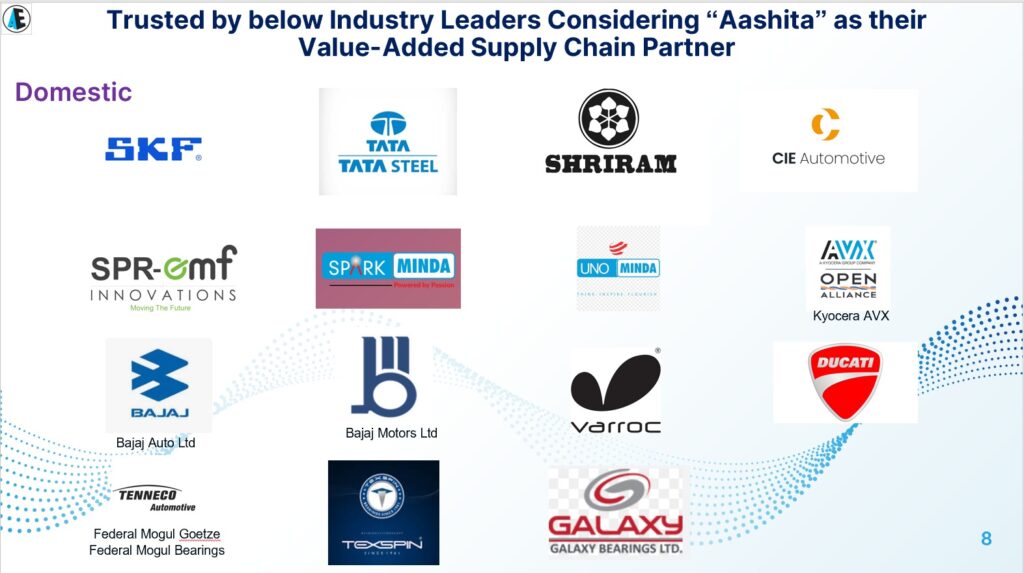 Its growing client portfolio includes leading names such as Bajaj Auto, SKF, and Schaeffler, who regard Aashita as a value-added supply chain partner.