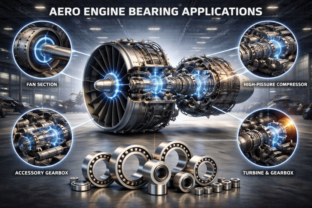 Aerospace bearings are used across a wide spectrum of applications including fixed-wing aircraft, helicopters, aeroengines, space systems, missiles, and unmanned aerial vehicles. Unlike automotive or industrial bearings, these applications are characterized by low volumes, high mix, and very specific operating conditions. Some bearings rotate at extremely high speeds under controlled lubrication, while others operate under oscillatory motion, high loads, shock, vibration, temperature extremes, vacuum, or corrosive environments. In many cases, bearings may rotate only a few degrees repeatedly over their entire life, yet must survive tens of thousands of cycles without measurable degradation. This diversity of operating profiles makes aerospace bearing design fundamentally different from catalogue-driven industrial products.