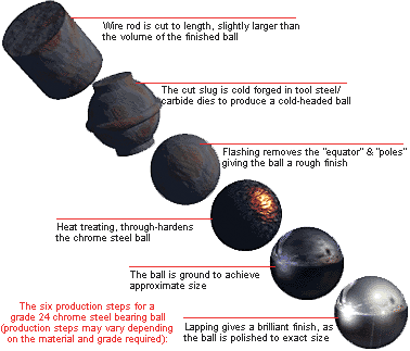 Flashed balls are rolled between cast iron plates — one stationary and one rotating slowly — to refine sphericity and size. At this stage, geometry is established and inspected according to ASTM F2094 standards and customer specifications. - Polishing